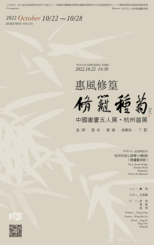 用金琤的话说,“一为交谊,更为交流。不同专业方向的女性书画家汇聚一起,该有不同以往展览的莫逆,我深信。”展览的标题,她欣赏林徽因“真正的平静,不是避开车马喧嚣,而是在心中修篱种菊”,宁静、平和,复归心灵,为共同的向往,于是轻轻松松地画展名字“修篱种菊”也有了。