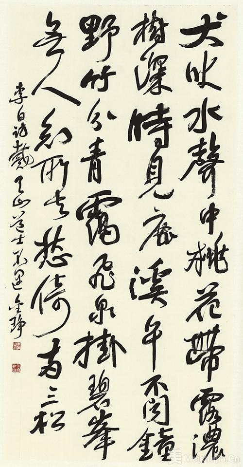 女艺术家从艺往往更胜一筹。正因为她们更多地受工作、家庭、生活的羁绊,而在岁月流逝中找到自我发展方向,默默求索,尤感享受。书斋,一个人静心、舒缓地写字画画,让嘈杂、功利拂尘而去。时而临仿法帖名作,怀想文人悠远的情态;时而自由纵情挥洒,驰骋在洁白纯净的宣纸上。沉浸在一个纯静的、明朗的新天地,亦真亦幻。