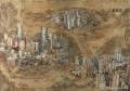 《梦幻之都》是重庆今天发展成一个现代化大都市的缩影,如果拿它和几年前画的《造城》对比来看,会发现《梦幻之都》的色彩相当跳跃,对比也很强烈,整个城市就像被霓虹灯所包围一样,似乎给人一种不真实的感觉。但我想说,这恰恰是我眼中重庆真实的样子。这幅画取材于重庆的夜景,因为这几年在做“光彩工程”,重庆夜间的灯光建设也成为了一个有名的景观,夜晚的重庆就笼罩在这样光怪陆离的色调之中,这样的城市确实是每天存在于我们的生活中,我们就生活在此,所以它是真实的;但它又是梦幻的,不只是因为灯光和这种景观式的视觉效果产生的虚幻错觉,更多的是在这样绮丽的景观背后,还重叠着这座城市以前的样子。因为生活经历的不同,每个人看到的重叠的景象也不尽相同,其实大家所见都是自己的记忆,也就是自己生命的痕迹。在这座城市里,每个不同的生命过往重叠在这样的景观背后,层层叠叠,它能不梦幻吗?在这幅作品里,有很多感悟与思考:我们既是生活在城市中的人,又是城市景观的观众,在一座高速发展的现代化城市中,我们怎样在这里留下自己生命的痕迹?当我们老去或是离开这个世界,我们怎样告诉这个城市,我们曾经来过?我想,我的作品会留下来说出这一切。
