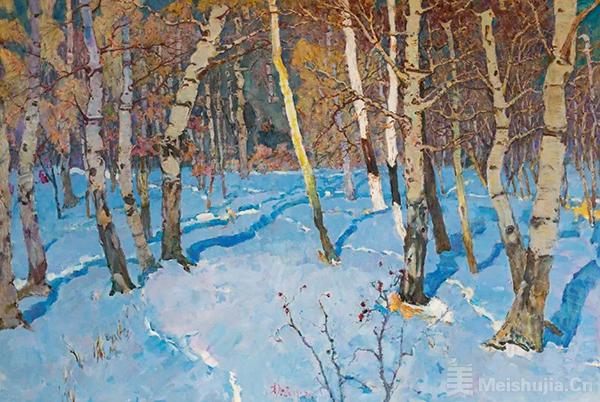 (3/5)郑光旭《阳光下的白桦》 布面油画 130cmx180cm 2019年