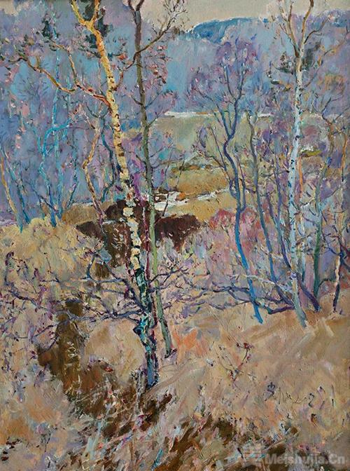 (4/5)郑光旭《五台山下的白桦》 布面油画 120cmx90cm 2021年