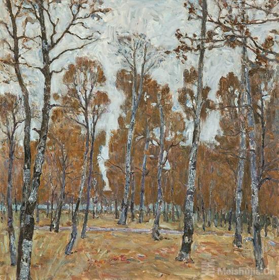 (5/5)郑光旭《秋桦》 布面油画 80cmx80cm 2008年