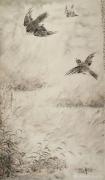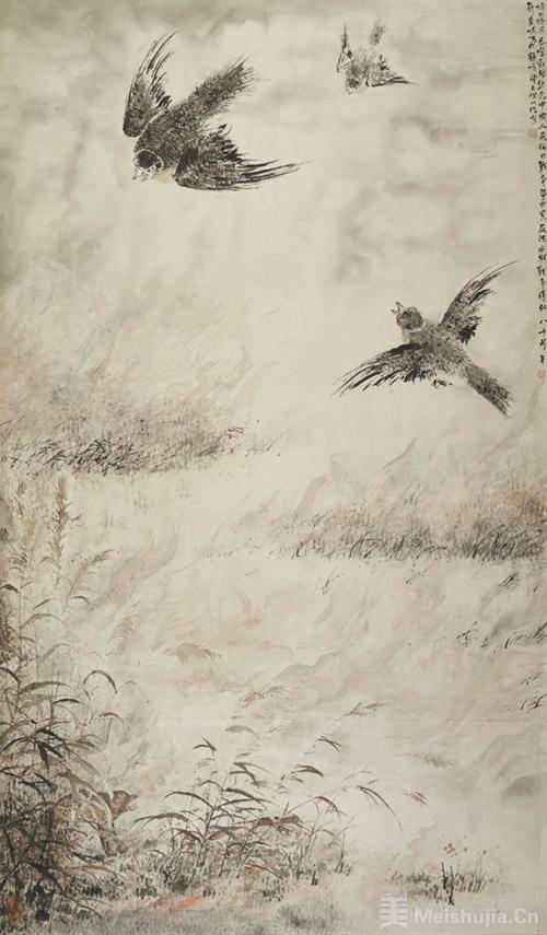 他秉持生活是艺术的源泉,常年深入乡村田野,以画笔反复推敲自然中一草一木的鲜活气息。那些憨态可掬的猪群、灵动矫健的春鸟、静谧沉思的人物,皆源于对生活的赤诚观察。在他眼中,万物皆有灵性,无论是珍禽猛兽还是家禽野草,都能在笔墨中绽放出平等的审美价值。