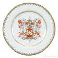 (3/6)青花矾红描金纹章纹浅瓷盘,清乾隆
