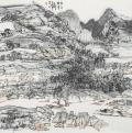 如此的赤诚,来自画家心中眷恋家乡长出的血肉。几十个春秋,韦俊平心灵深处的情愫越拉越长,一种对追溯起源的执着,牵引着他每年的节假日都往红水河畔奔跑,奔向老家屋里日渐沧桑的父母,奔向99岁高寿的奶奶,奔向家乡的竹林山涧,奔向哺育他的父老乡亲,年复一年;而家乡的召唤也越来越清晰,红水河的涛声在他的心底不断鸣响,回家的路每天都在等待游子。这双向绵长的乡情最终化为他的笔墨山河:浸润着浓浓的乡愁与眷恋的喀斯特峰林、红水河畔、山路弯弯、田野四季、农家小院,在韦俊平水墨的氤氲变化和色彩的微妙渲染下,山水间瞬息万变的自然光影和人间气息,就创造出诗意南方的蓬勃,那是画家心灵的来处,当然也是画家艺术的未来。