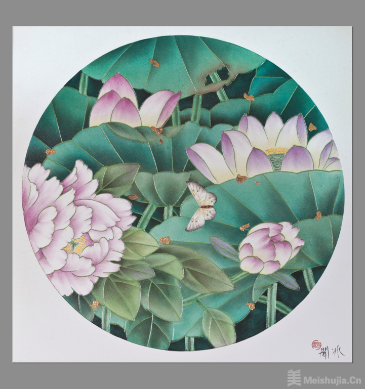作为陶瓷装饰艺术的坚定守护者,张闻冰教授深耕领域二十余年,其艺术实践与守护者计划的理念高度契合。他摒弃对古法的简单复制,专注于汲取传统精神内核并以当代语汇重构表达,构建起独具特色的“东方新古典”美学体系。其独创的“泥金飞彩”系列作品堪称本次展览的点睛之笔,通过对传统陶瓷装饰技艺的革命性突破,将自然中完美瞬间定格于瓷面,饱满圆润的花叶与华丽典雅的色彩,既呈现纯粹宁静的审美意境,又彰显传统技法的当代生命力。从装饰到绘画的多元融合,张闻冰的作品实现了造型、装饰与材质的完美统一,成为传统技艺现代化的生动范本。