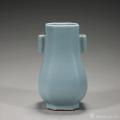 (1/7)天蓝釉贯耳折方瓶,清雍正