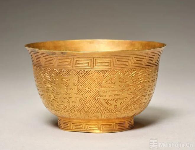 (7/7)金錾花双喜圆寿字纹茶碗,清同治十一年(1872)