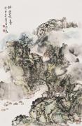 盛洪义,在中国的传统山水画上下过很大的功夫。他上追宋元,近读石涛、黄宾虹。在笔墨上他悟得中国画的写意精神,其作品以写为主,笔墨潇洒,水墨淋漓,洪义的书法写得好,所以他的画更加有品位。