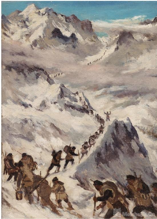 在“胜利烽火”篇章展区,展出作品以红军长征、卢沟桥事变等红色基因为历史锚点,突出表现了中国共产党在全民族抗战中的中流砥柱作用。“民族欢歌”篇章展区,李晓林的《玉树少女永藏卓嘎》、卢卫星的《祥》、林艺《红色的纽带》等作品都在此篇章中亮相。“吾土生辉”篇章则聚焦80年来的建设成就。颜文樑创作的《国庆十周年》格外引人注目。《国庆十周年》是颜文樑为庆祝新中国成立十周年而创作的油画作品,生动地描绘了上海南京路国庆夜景的繁华景象,图像栩栩如生,色彩斑斓绚丽,堪称表现夜景的杰作。“为了精准还原夜景光影,颜先生当时用黑布遮窗、穿孔取光模拟黑夜,从1959年国庆起稿,到次年五一才完成。”展览策展人、苏州市公共文化中心工作人员刘学介绍。