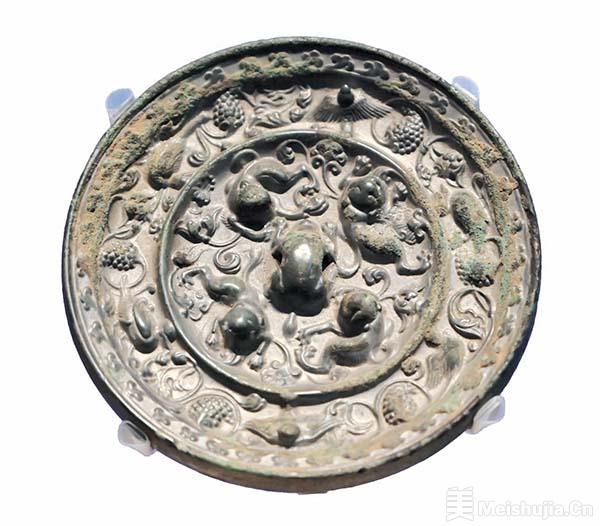 唐代铜镜的造型多样,除传统的方、圆形式外,又创新出八瓣菱花形、八瓣葵花形等多种形式,其中以海兽葡萄纹镜的数量最多,流行地域也最广。这种镜形体厚重,造型独特,集中了中西文化的特点,是中外经济文化交流的见证。