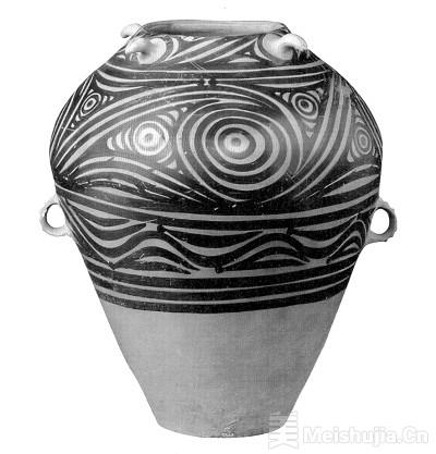 距今1万至4000年前左右,中国进入新石器时代(晚期也称铜石并用时代),中国的史前艺术也逐渐进入繁荣发展的阶段。原始先民创造的艺术品体现了师法自然的特点,最具代表性的就是陶制艺术。作者不仅介绍这些绚丽多姿的工艺品,也注重阐明作品产生的文化背景。如黄河流域仰韶文化的人面纹彩陶葫芦瓶,反映的是先民的图腾崇拜信仰(如《诗经·大雅》《生民》篇所云“绵绵瓜瓞,民之初生”);大汶口文化的猪形陶鬶具有祈祝丰饶的含义;宝鸡北首岭类型的蓄须男性彩陶塑像是父权制偶像,意味着当时的社会性质已经由母系社会向父系社会转变。