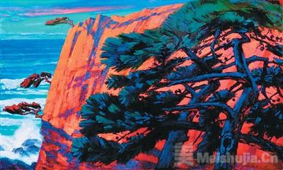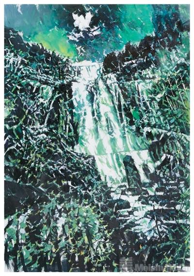 在这里,观众可以看到油画艺术融汇中西、民族化的探索。詹建俊的《听涛—红霞》将传统山水的写意精神融入油画语言,既保留了油画材质的质感,又暗合中国山水画“皴擦”技法的韵律,表达对人类精神境界的永恒追问。靳尚谊的《黄宾虹》融合西方古典油画的厚重与中国传统笔墨的意境,突出人物深邃神态与淡泊气质,传达出东方文化精神的独特韵味。许江的《关于远山的迷宫》系列4幅作品——《峡》《涯》《崖》《瀑》,通过对自然地貌的重构,将个体生命体验与历史记忆交织,形成具有诗性的视觉叙事,是其近年来以“山水精神”为核心、融合东方哲学与当代艺术语言的重要创作。尚扬的《董其昌计划45号》以抽象的山水符号解构传统,通过拼贴、覆盖与撕裂的肌理,营造出混沌的视觉体验,折射出全球化语境下文化身份的焦虑与传承困境。