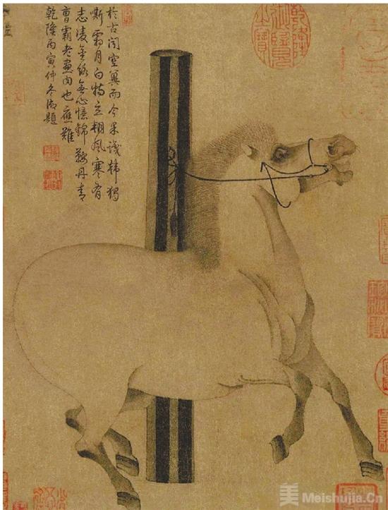 韩幹开创了以真马为师的写生画法,形成体态丰腴、姿态安详的鞍马新风。
