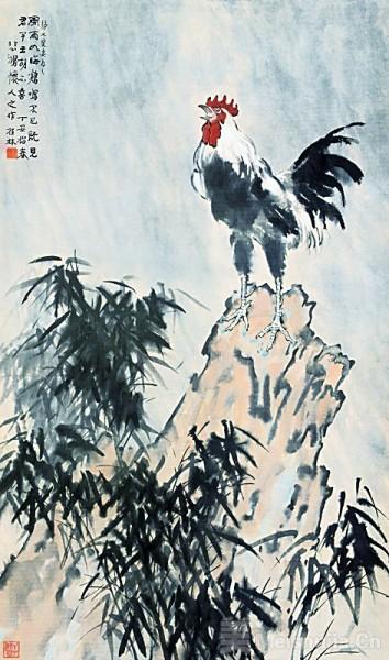 1937年,卢沟桥事变爆发,日军开启全面侵华战争。徐悲鸿想起了《诗经·郑风·风雨》里的情景,创作了国画《风雨鸡鸣》,画家描绘了在凄风苦雨中的背景下,一只公鸡站在巨石上昂首高鸣的画面。他相信,抗战的过程虽然是艰苦卓绝的,但结果一定会是“雄鸡一声天下白”的。
