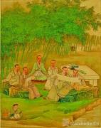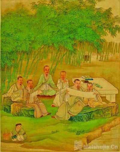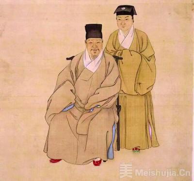 《松江邦彦画像册》中,徐璋将松江地区元代以来的著名历史人物绘制出来,其中有朝服像,有便服像,人物或站、或坐、或侧躺,生动自然。人物面部有追求结构、明暗的尝试,皱纹、斑点都一一呈现,更加写实。
