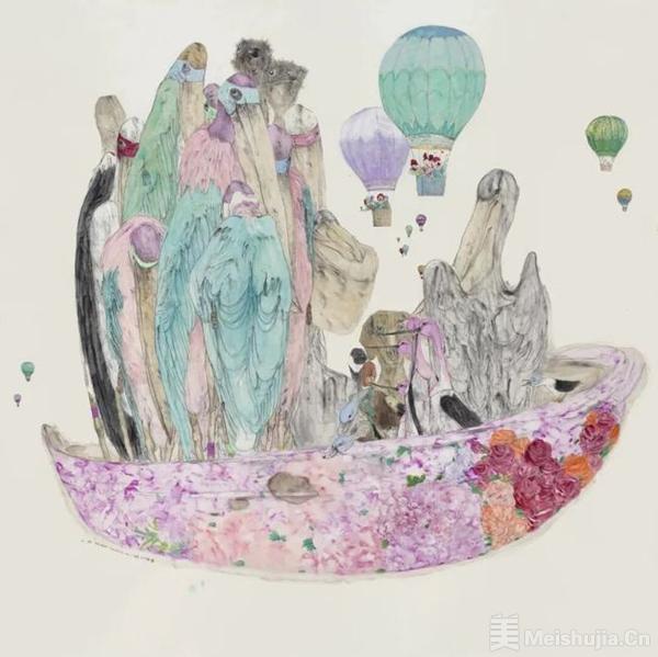 与此同时,姚大伍又将北方绘画中粗粝大气的文化底蕴和江南相对润湿含蓄的审美思潮相结合,这使他的作品充满一种浪漫主义的梦境感和诗意感。