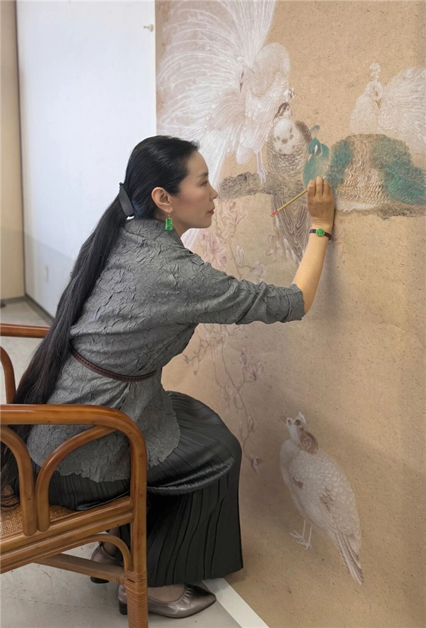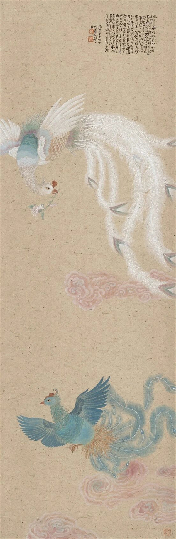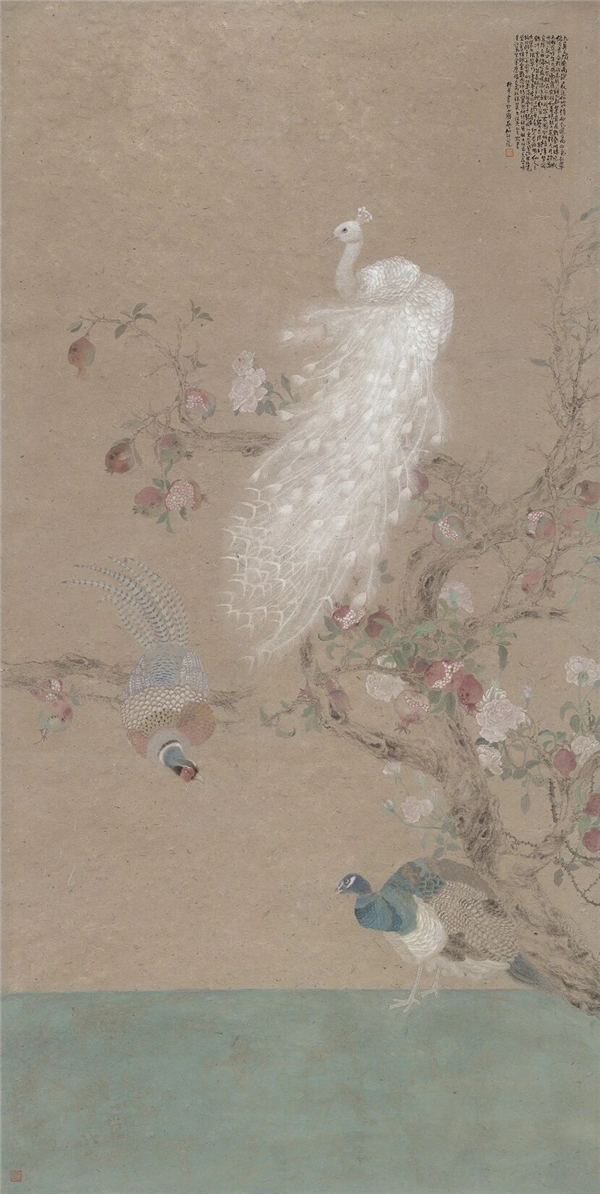 《秀羽珍禽》纸本设色 240x120cm 2023年