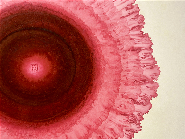 初见,一朵粉色的罂粟花,如水中轻盈的花瓣,晕染着,层层绽放,如水母般轻盈,薄如蝉翼的涌动,荡漾。再看花瓣中心的颜色,又像一滴彩墨,滴入水的正中央,层层漾开,幻化开来。