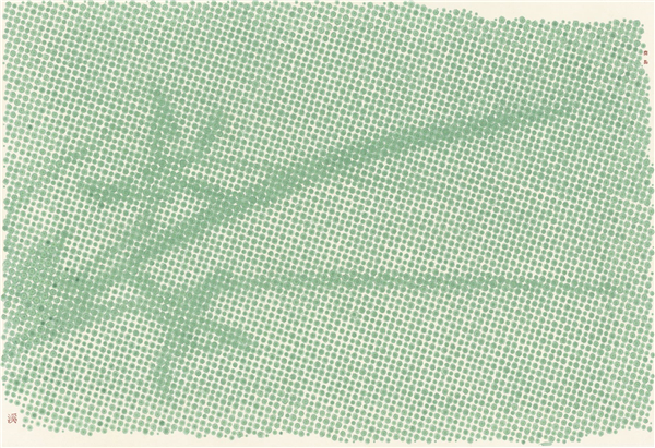 绿色晕点 / 水墨纸本 3D变数 / 6 9 X 138 cm / 2022