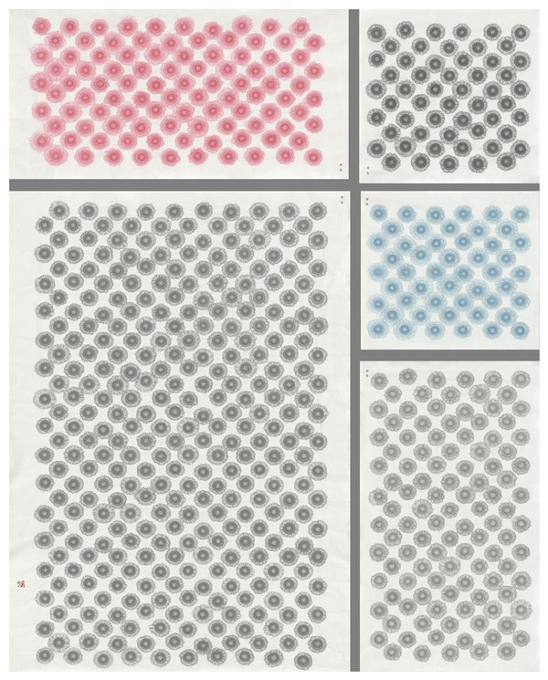 · “南氏晕点”:此技法将墨点提升至“艺术原子”的地位。通过控制水分与渗透,每一个墨点既是独立的微观宇宙,也是宏观图像的构成基础,在“像素化”的表象下,实践的是中国传统“气韵生动”的当代转化。