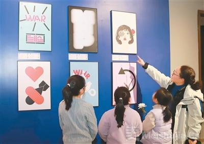 展厅里的海报形式多样,表达多元,凝结着作者的创意与情感。这些作品如同点点星光汇聚成河,传递着生生不息的和平祈愿。