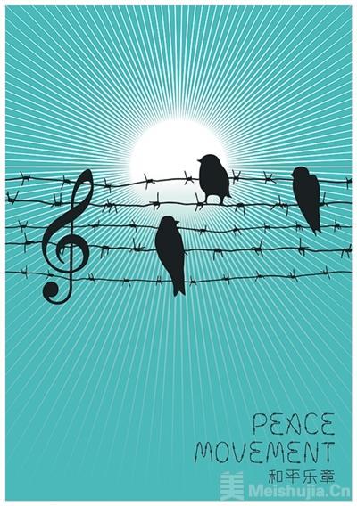 而来自中国的作者尹嘉诚,则将和平鸽的抽象造型拆解重组,从左至右巧妙构成“LOVE(爱)”“HOPE(希望)”“PEACE(和平)”三个英文单词,构成作品《Peace World》。设计简洁却意蕴深远,让和平的理念在文字与图像的交织中深入人心。