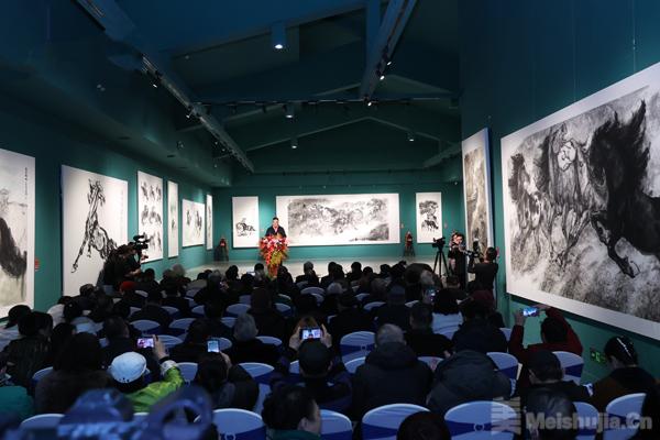 12月18日,一场以骏马为主题的水墨艺术大展“鸿马 谈笑往来——鸿伟画马展”在书画频道启幕,为即将到来的马年献上一份水墨厚礼。展览由书画频道、中共铁岭市委宣传部、中共铁岭县委主办,书画频道中国书画艺术研究院、鸿马艺术馆承办,中国马业协会文化艺术委员会、深圳市马术协会、北京八荒锦绣文化发展有限公司、乾元传承(北京)文化有限公司等单位协办,并获得中国马业协会、铁岭市文学艺术界联合会的支持。展览中,孙宏伟以马为载体的系列作品集中亮相,以腾跃淋漓的笔墨、浑然天成的气韵,为观众带来一场融汇传统精神与时代审美的视觉篇章。