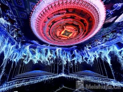 另一方面,新媒体艺术和沉浸式展览,则在积极探索藻井与观众之间的全新相遇方式。通过实时渲染与投影映射技术,原本静止的藻井纹样可以被赋予生命:云纹缓缓流动,莲瓣随呼吸舒卷,如星轨般的几何线条在穹顶上旋转、聚集、消散,营造出介于真实与虚拟之间的“光影藻井”。观众不再只是仰望者,而成为光影场域中的参与者——步伐、目光甚至心率,都可以被传感器捕捉并反馈为画面的变化,使“穹宇”对每一个个体作出独一无二的回应。