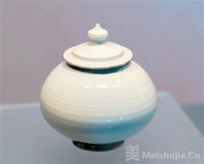 元代白瓷划花卷草纹盖罐(山西博物院藏)。山西博物院供图