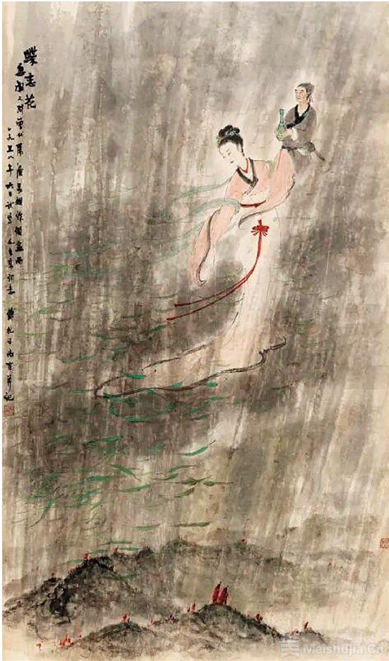 傅抱石(1904~1965) 《蝶恋花·游仙词意》第五本 立轴 镜心 设色纸本 1958年作