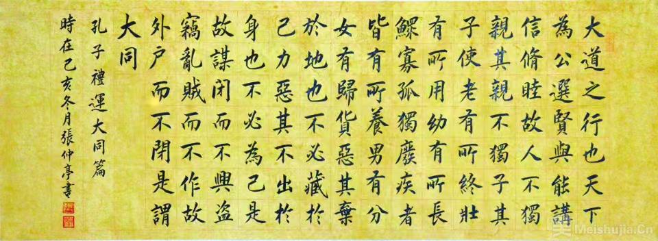 书法的至高境界乃中华民族文化精粹,在于以笔墨载道,以文心传情。张仲亭深谙此道,始终以国学经典为创作核心,让书法成为传承中华优秀传统文化的重要载体。2016年4月23日在北京中华世纪坛世界艺术馆举办的《大道之行——张仲亭书国学经典作品展》隆重开幕,展览由中国书法家协会、山东省文联等单位主办。他的108件作品涵盖大楷、小楷、行书,《大学》《师说》《岳阳楼记》等经典篇目,尤其是近20米长的小楷《论语》《金刚经》《道德经》三部长卷,一经展出,便轰动了京城。展品字字工整,笔笔精到,墨色浓淡相宜,章法疏密有致,让首都观众久久沉浸在国学经典——书法艺术的无限魅力之中,显示出书法艺术强大的生命力。