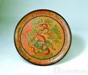 故宫博物院藏明代戗金彩漆岁寒三友图圆盘,盘内髹黄漆做攒犀地,盘心开光内雕填彩漆戗金松竹梅岁寒三友图,盘边亦为松竹梅纹,图纹生动传神,攒犀均匀细密,敷色清新淡雅。明代高濂在《遵生八笺》中记载:“宣德有填漆器皿,以五彩稠漆,堆成花色,磨平如镜,似更难制,至败如新。”攒犀是填漆雕刻的一种工艺,亦被称为“戗金间犀皮”,传世器物极少。此圆盘将填漆工艺和戗金工艺结合在一起,红花和绿树对比强烈,与戗金相映,更显得金碧辉煌。