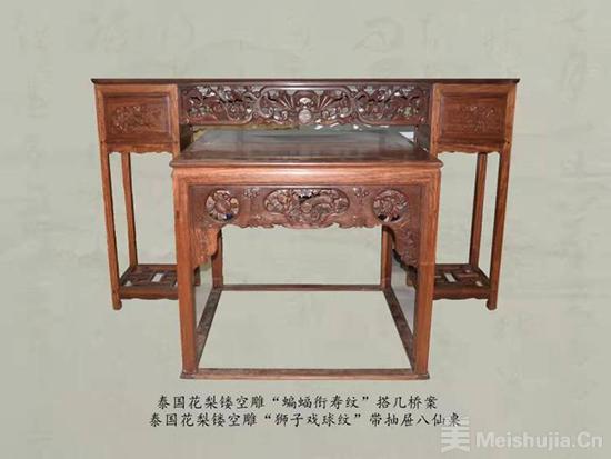 李氏家族捐赠的该批藏品,时代从清代中后期延续至今,跨越了200多年的历史。琼式家具的材质有泰国花梨、柚木、坡垒等,包含柚木雕福寿八卦饰板、柚木镂空花鸟纹矮脚吊线门、泰国花梨镂空宝瓶纹双人架子床等多种式样,工艺精湛,图案雅致。