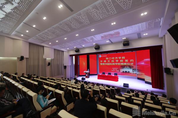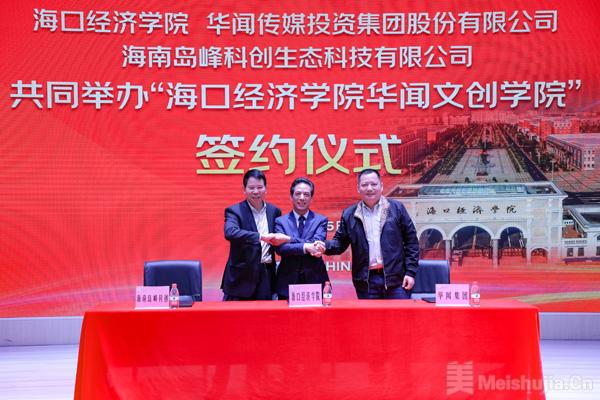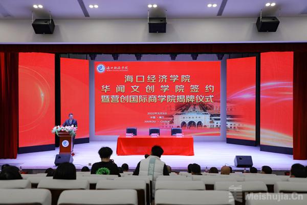 仪式上,学校曹成杰董事长分别与华闻集团董事长兼总裁汪方怀,海南岛峰科创、中国特色自贸港研究院研究员朱华友签署共同举办“华闻文创学院”合作协议,并与学校党委书记王志芳和营创华夏(营创书院)联合创始人兼CEO苏丹等共同为“营创国际商学院”揭牌。学校执行校长彭京宜教授发表热情洋溢的致辞。华闻集团董事长兼总裁汪方怀,海南岛峰科创、中国特色自贸港研究院研究员朱华友分别代表华闻文创学院合作方乙方、丙方讲话;汪方怀董事长讲了三个关键词:“点赞”(为学校建设发展点赞);“感谢”(感谢校企合作的机遇);“希望”(寄希以签约为始,开好头、起好步,把文创学院建成独立学院、特色学院、创新学院、品牌学院)。朱华友先生在讲话中以“古有桃园三结义,今有三方签协议”开篇,也讲了三个关键词:“牢记使命、建立信心、精诚合作”。营创书院合作方代表在讲话中以“感谢缘分,引进大师、打造品牌、奉献社会”为关键词,谈了校企合作后的设想与展望。