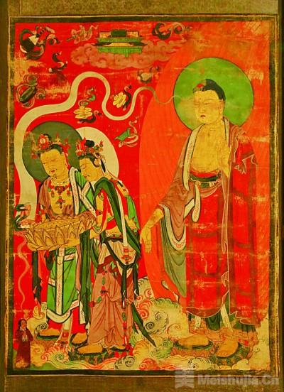 追溯其来源或同类型的艺术表达,我们不得不将视角转向敦煌地区所保留的内容丰富的晚期壁画,黑水城出土唐卡的题材和内容在当中都有所表现,但其形式却又不完全一致。