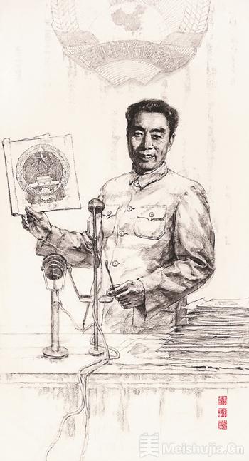 “我们画总理、学总理,就是要表现周总理上下求索、英勇奋斗的人生足迹,带着怀念、带着思索、带着坚守,来感受、触摸总理的坚毅与温情。”李世刚说。