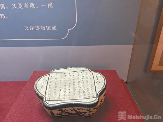 除去这只色彩斑斓、光彩照人的瓷枕,还有一只白釉黑彩的大石调瓷枕,将一首宋代词调写于枕上,并着重标出其调高——大石调。“大石调”是隋唐时产生,宋代广泛运用在词调音乐上的宫调调名,是俗乐二十八调中的一调。在《新唐书·礼乐志》、唐代段安节《乐府杂录》、宋代王溥《唐会要》、宋代沈括《梦溪笔谈》、宋代蔡元定《燕乐本原辨证》等文献著作中均有记载。大石调属于商调系统,后又称大食调,随着音乐历史的发展,这种宫调体系也在不断进行着演变,历经宋元的盛行、明清的重构,至今仍然能在很多传统音乐中看到其身影的延续。而这只淡雅的瓷枕,就是这段重要音乐历史的载体与真实写照。宋人爱好在瓷枕上书写诗词歌赋等内容,简简单单一方瓷枕,记录着中华文明的赓续传承。