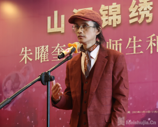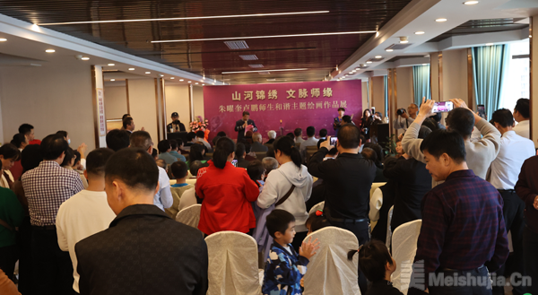 2023年12月10日下午2点半,“山河锦绣 文脉师缘”朱曜奎卢鹏师生和谐主题绘画作品展在梧州藤县广西锦华国际山水艺术馆正式开幕!本次画展对外展出了清华大学美术学院朱曜奎教授与弟子卢鹏多年来创作的100多幅精品力作,画作涵盖了风景、荷花、静物、抽象、易学图腾等系列题材作品,吸引了来自北京、广州以及广西南宁、柳州、梧州等地数百位文化艺术爱好者前来共饕艺术盛宴,欣赏画作。