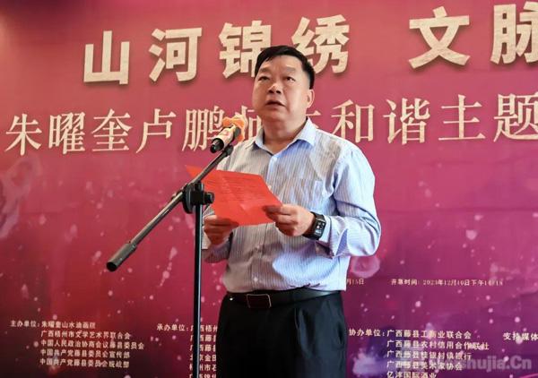 画展开幕式由全国青联委员、梧州市政协常委卢爱任主持,清华大学美术学院教授朱曜奎,藤县籍美术家卢鹏,梧州市文联党组书记、主席林敏华和藤县人大常委会主任蒙土金,藤县政协主席李有杰,梧州市文联党组成员、副主席潘彤,藤县县委常委、宣传部部长秦燕、梧州市驻京联络处主任何杰华、藤县政协副主席陈志金等出席并分别致辞和进行剪彩仪式,梧州市美术家协会主席杨杰主持学术研讨会,梧州市美术家协会、藤县美术家协会部分会员代表以及美术爱好者等参加了开幕式。
