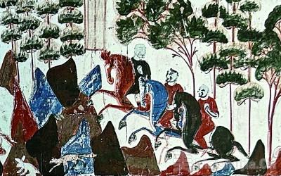 敦煌石窟开凿的初期,正是中国山水画逐步诞生的时期,其早期壁画中的配景山水与中原文化有着密切的联系。北魏时期,随着洞窟开凿的数量和规模增大,佛教本生故事画、经变画开始出现并流行起来。工匠们依据佛经和粉本,以自己熟悉的艺术表现手法展现佛教经典内容,山水图像成为画中配景,并随着本生故事画、因缘故事画以及佛传故事画的发展逐渐进入人们的视野。