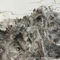 《新疆喀什写生》34.6cmx34.6cm 李岗的山水画创作以“ 致广大而尽精微 ”为核心理念,在宏观意境与微观笔墨的辩证统一中,构建传统山水画的当代语言体系。其创作既延续“ 外师造化,中得心源 ”的传统脉络,又通过技法创新与观念突破,赋予山水画以生态美学的时代内涵。这种“ 守正创新 ”的艺术实践,为中国山水画的当代转型提供了重要范式。 一、宏观意境的现代演绎 李岗善于运用全景式构图展现自然山川的磅礴气象。在他的作品中,层叠
