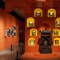 “面具、迷宫或游戏的主人——傩面具艺术体验展”现场 2025年湖南美术馆民间美术系列展览“面具、迷宫或游戏的主人——傩面具艺术体验展”正在展出。此次展览以南方傩面为切入点,集结了湖南、四川、贵州、江西、广西各地百年珍稀古傩面及相关展品200余件,探索民间美术如何从乡土符号升华为观念媒介,并深入当代人的精神世界。 关键词引发的文化叙事 作为原始信仰的视觉化呈现,傩面以其高度浓缩的造型语言与对应的仪式功能构成了独特的民间艺术表达系统。在原始宗教中,面具是