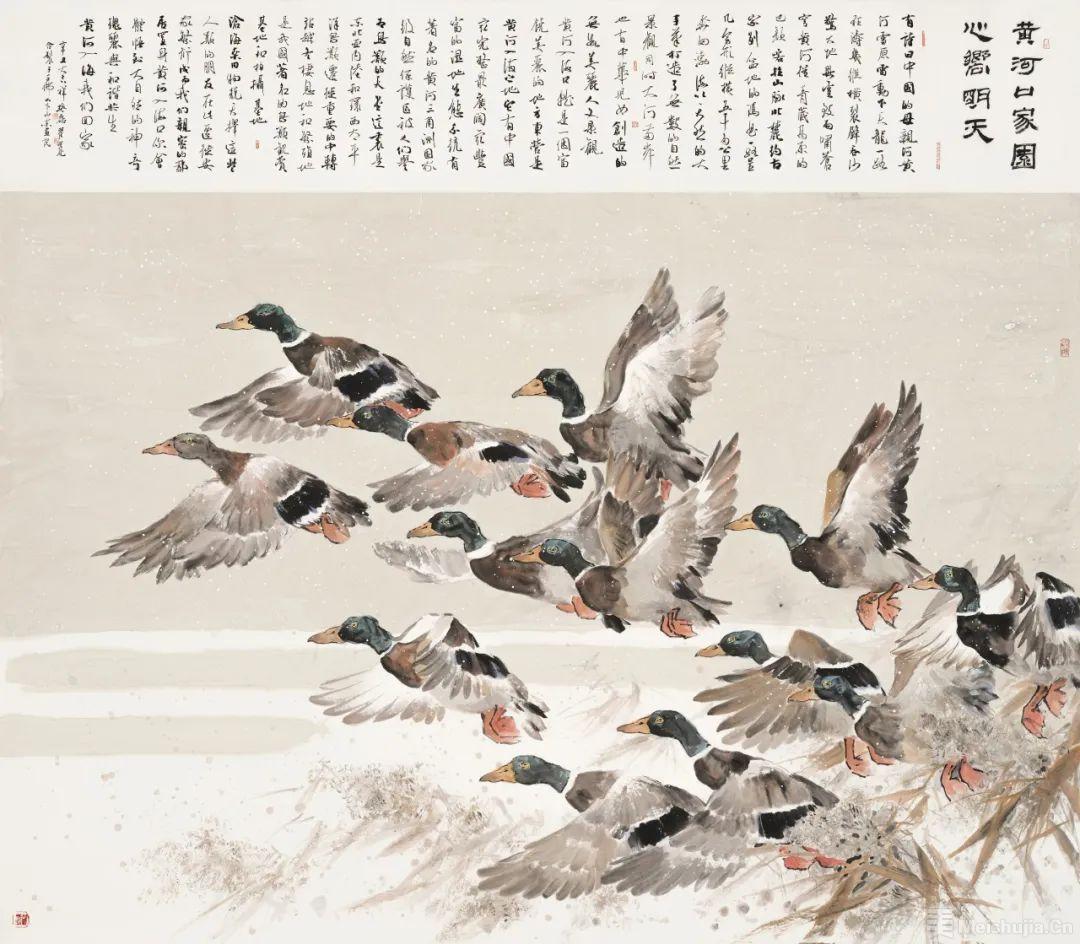 「赋」板块展出的作品描绘黄河壮阔的自然景观,在自然风景的描绘中融入对时间的折射、对历史的关照。「比」版块呈现黄河流域积淀的文化遗产和文化特色的载体与符号,展现黄河文明的包容性和生命力。「兴」版块的作品选取历史人物、生活片段、建设过程为描绘对象,歌颂自强不息、百折不挠的黄河精神。