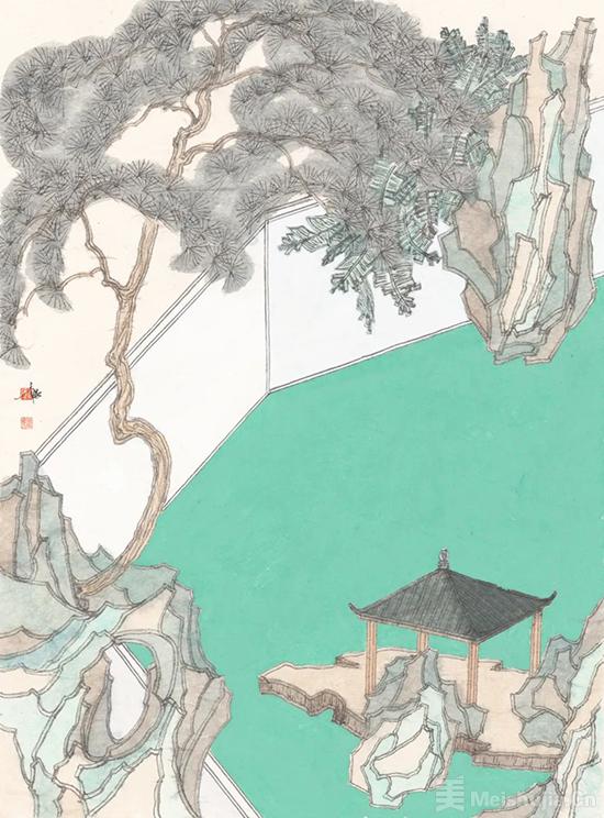 姚永强“居”园画园,徘徊在“曲水”“迴峰”之间,在曲园里植树种草,也在宣纸上叠山理水,皆为其心目中的理想天地。