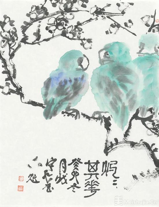 “月出东斗,好风相从”,美风景还在画上。六人写花弄鸟,共格共品,不随潮流,不刻意创新,学古人经典,入传统法门。师海派,追元明。青藤、白阳顶礼,八大、南田膜拜,伯年、苍石入怀。齐白石、潘天寿亦是取法兼收。同声相应,同气相求,何有不同道、不相谋之理。