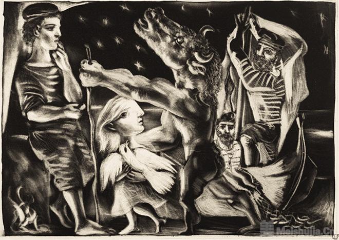 (2/6)《盲眼牛头怪于星夜由玛丽·泰蕾丝和鸽子引路》,巴勃罗·毕加索,1934-1935年