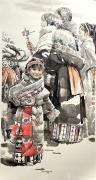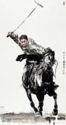 画家传统功力深厚,个人风格特征明确,作品呈现出雄浑、朴厚而豪放的特色,他注重外师造化,在传统人物画的技法形式中又注入了时代气息,在延续汉唐文脉的基础上开创独特风貌,更加丰富中国人物 画的表现形式,强化中国人物画的审美标准。当我们远看作品的笔墨时,似乎看到了画家解衣盘膊无拘无束的气质;而近看作品笔墨运用,又似乎感受到那种浑毫渲泻,惊天地、震鬼魂的气势,不由的让人感叹不已。