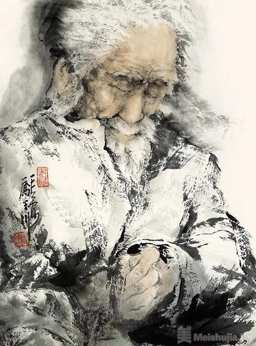 画家十分注重用笔用墨,也更加重视意 境与内涵,凡画忌浮燥、空泛,而能工、能写、 能精、能放,才方有天地可言。他静心创作, 默默攀登,在中国人物画领域,不断超越自我, 追求新的高度。水墨人物现场写生时惟妙惟肖的刻画能力,将笔墨发挥到亦工亦写,见笔见墨的自由境界。