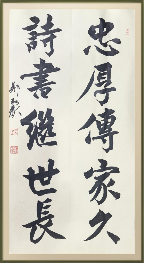 从少年执笔描绘竹影的稚拙,到弱冠后遍访名师汲取众长,郑和新始终怀揣着对书法的敬畏之心。他的书法之路,是一场永不停歇的朝圣。在临摹魏晋隋唐碑帖时,他仿若与古人促膝长谈,将历史的厚重与文化的精髓内化于心;于创作实践中,又将个人感悟与时代精神倾注于笔端,让传统书法焕发出新的生机。